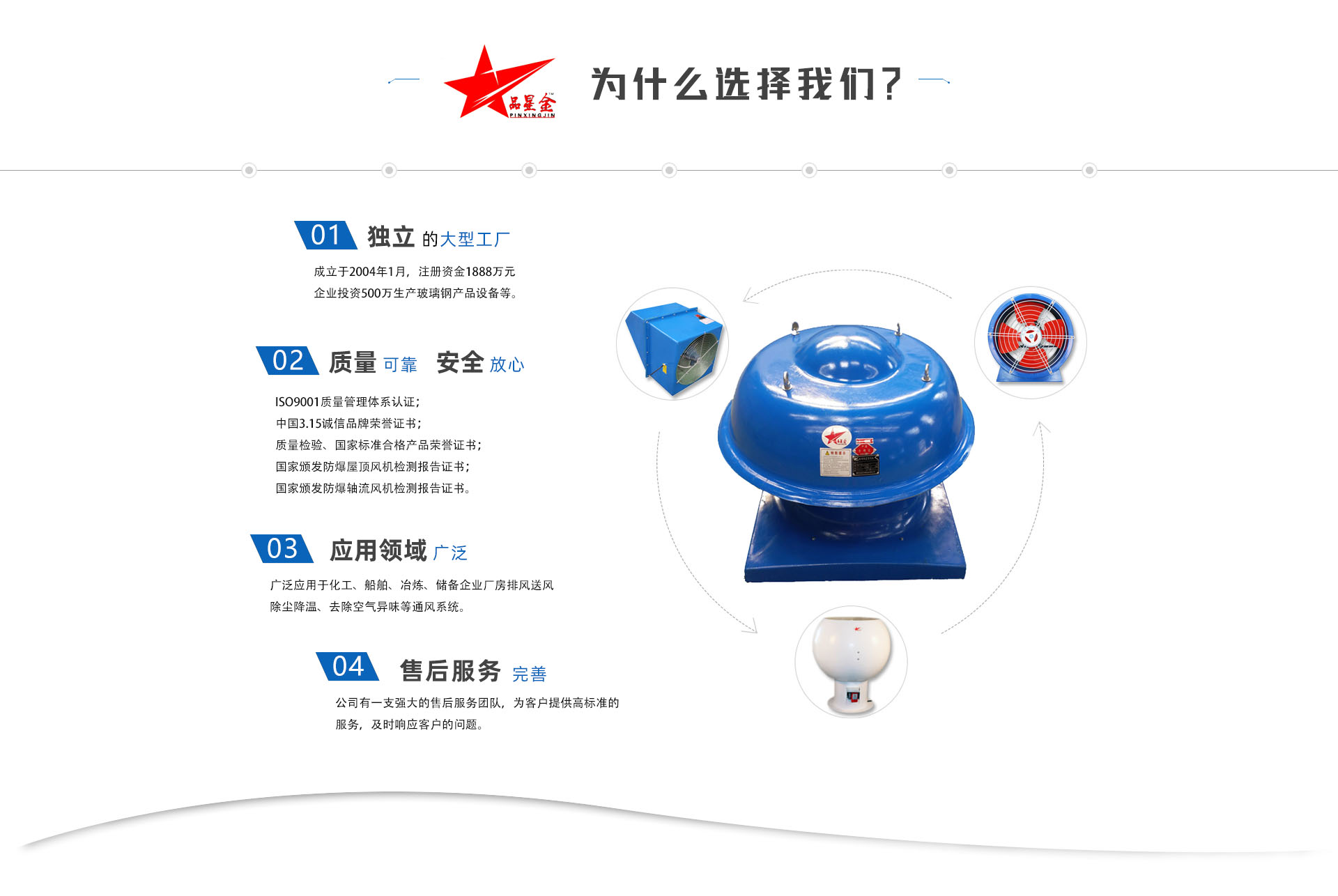 應(yīng)用于途化工、船舶、冶煉、儲(chǔ)備企業(yè)廠房排風(fēng)送風(fēng)、除塵降溫、去除空氣異味等通風(fēng)系統(tǒng)